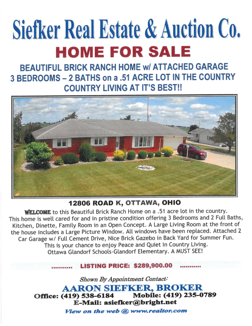 12062 Rd M-10 Ottawa, OH 45875 Phone: (419) 538-6184 Email: asiefker@bright.net